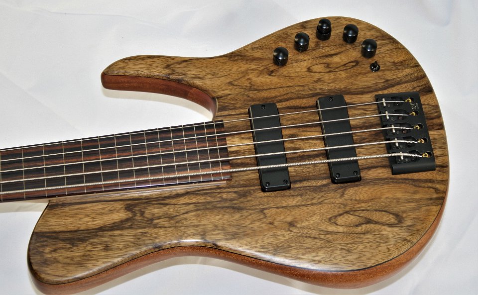 FRETBOARD: Ebony Macassar 34" scale PICKUPS: Delano SBC HE 5 Driver